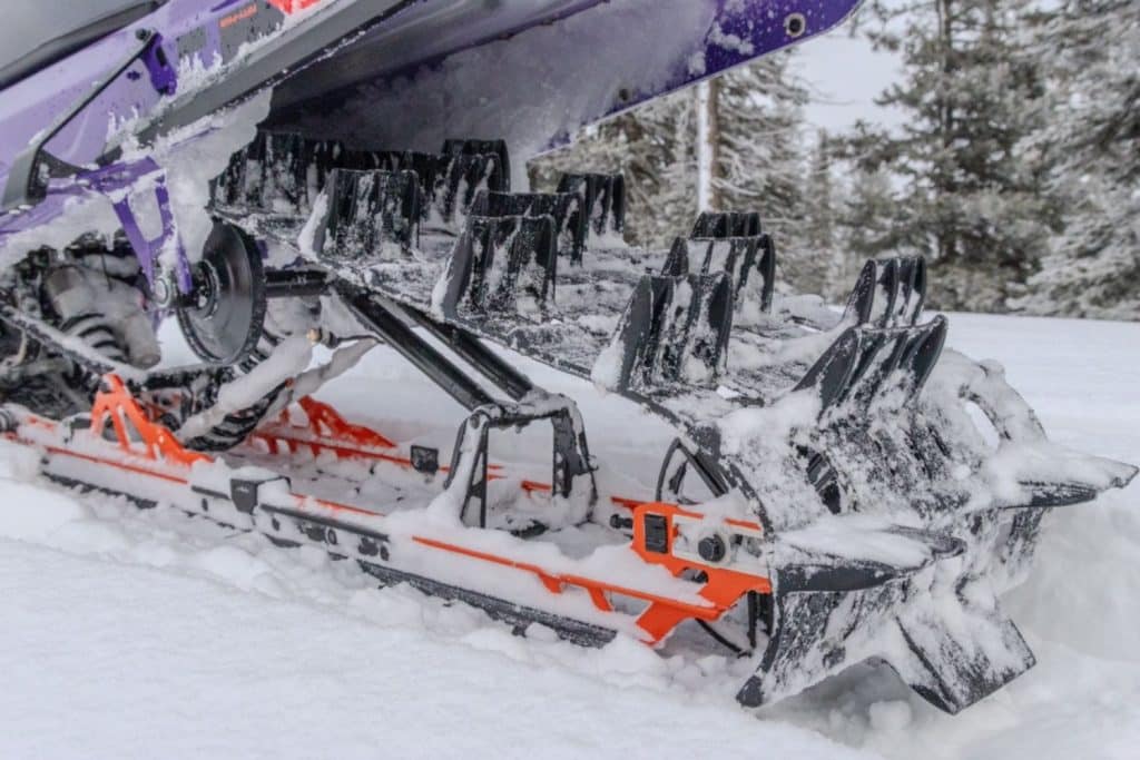 Dans cette même direction, notons l’introduction d’une toute nouvelle chenille de 147 po et surtout, avec des crampons de 3 po. Cette chenille est ultra-agressive et réduit de 8 livres la masse en rotation. Voilà qui fait une immense différence dans la dynamique de conduite et les accélérations instantanées.