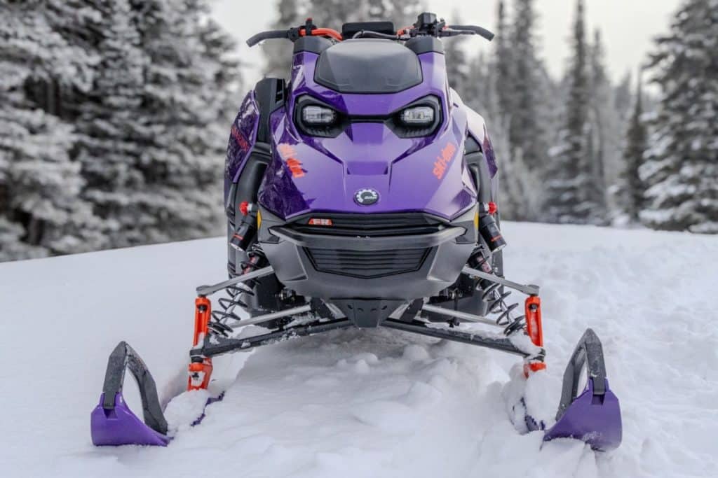 Tout d’abord, on ne pourrait passer sous silence la magnifique couleur qu’arbore la Ski-Doo Freeride 2027. Depuis plusieurs saisons, les Freeride amènent avec eux les nouveaux coloris. Cette année ne fait pas exception, le mauve Ultraviolet nous rappelle les Formula III des années 1990. On adore ou pas du tout !
